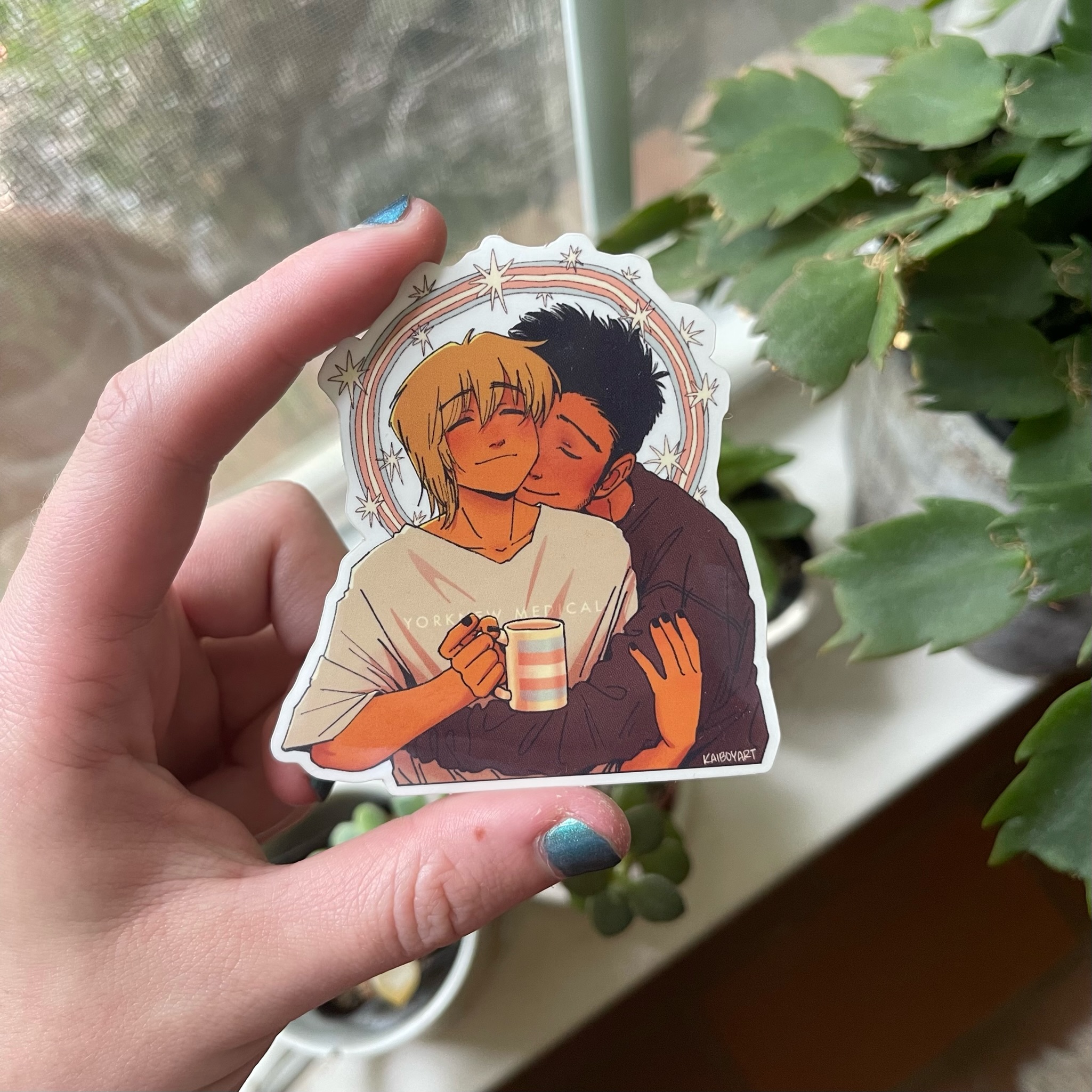 High-quality waterproof transparent vinyl sticker. Will last on your water bottle or sketchbook for a long time. Looks best on lighter surfaces. 2.8 x 3 inches.
