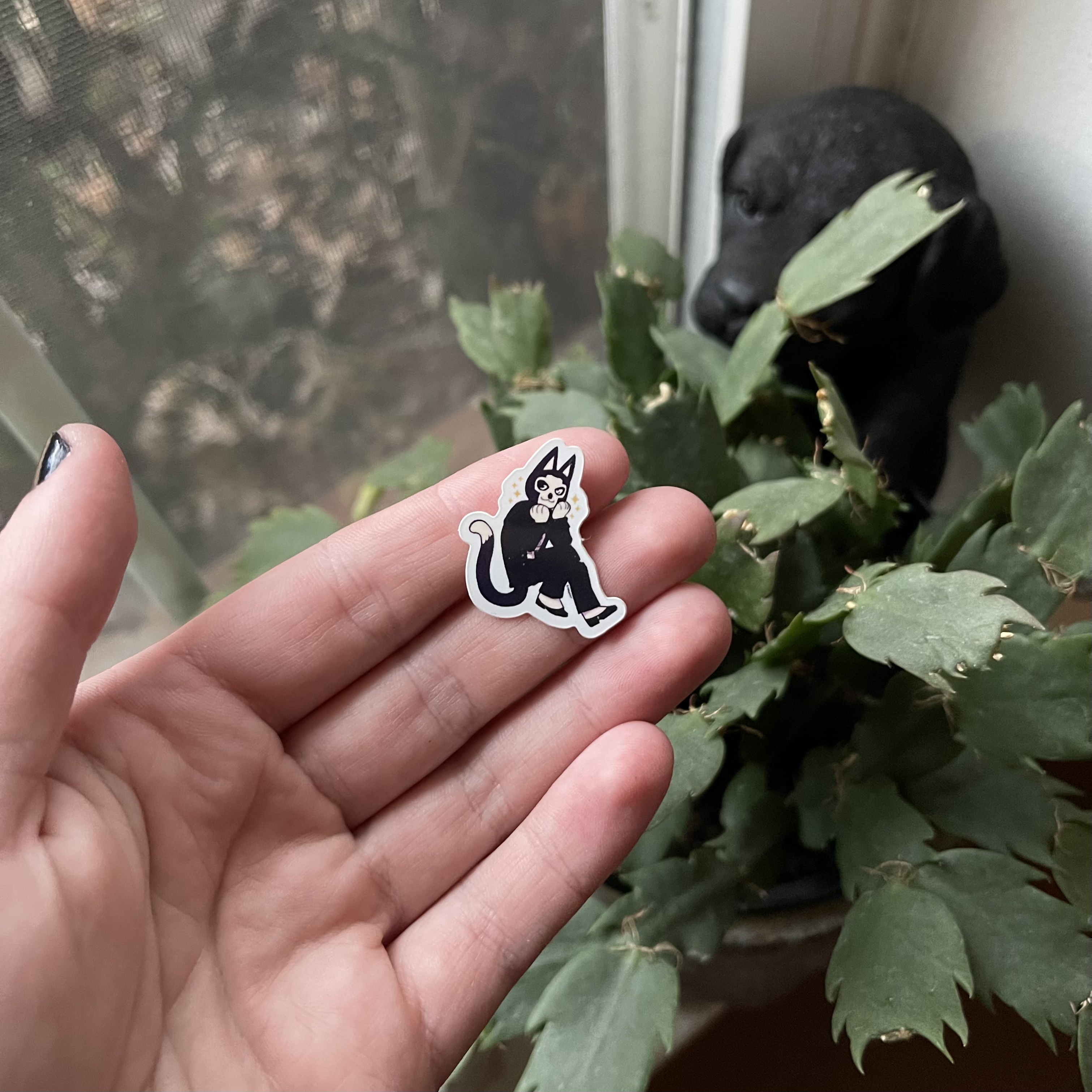 High-quality waterproof vinyl sticker. Will last on your water bottle or sketchbook for a long time. 1.9 x 2.2 inches.