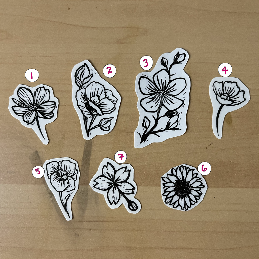 small flower linocut stickers