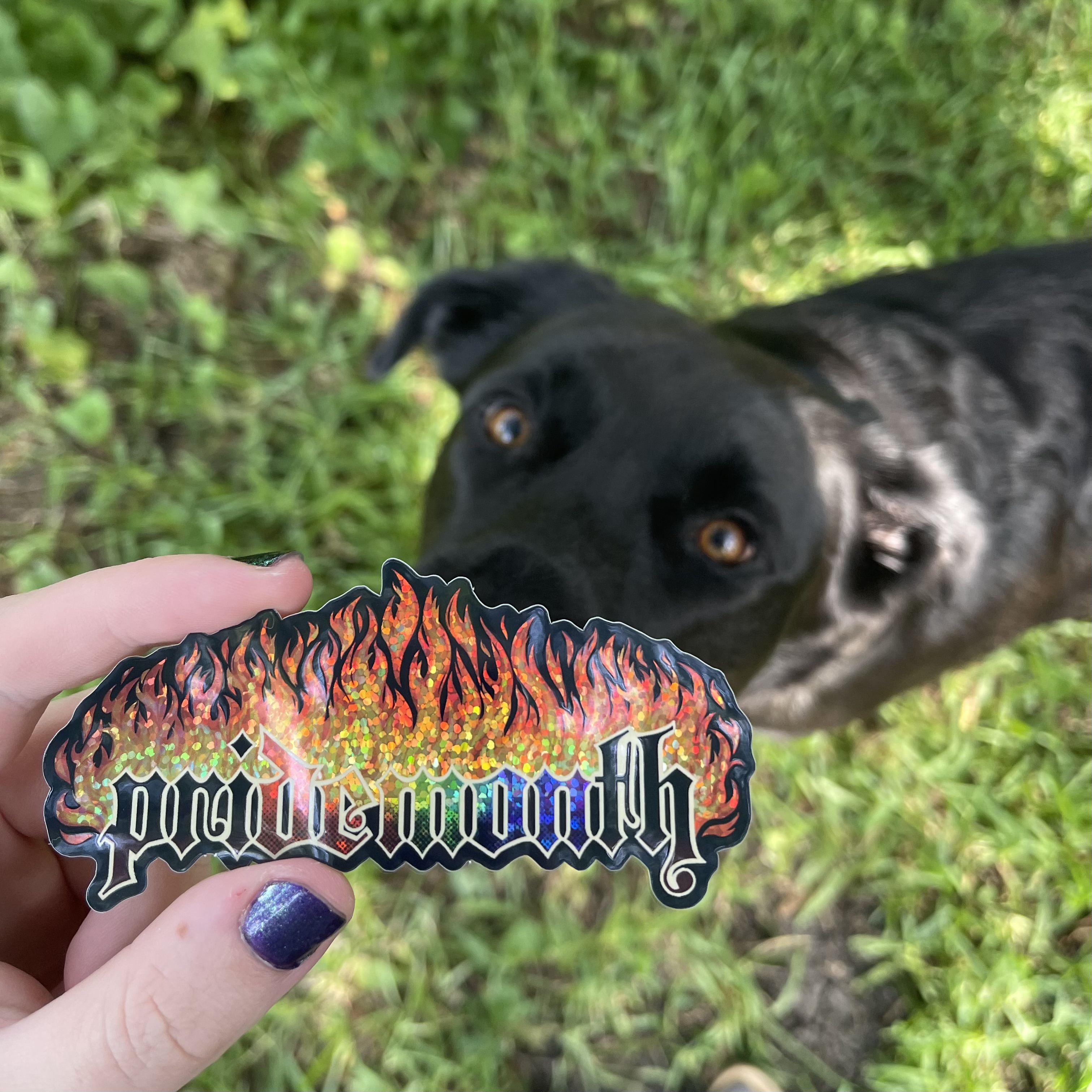High-quality waterproof glitter vinyl sticker. Very sparkly and fun to look at. Will last on your water bottle or sketchbook for a long time. 4 x 1.9 inches.
